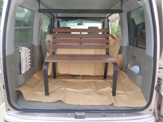 組み上げて元通りになったガーデンチェアーを車に積み込み、残った塗料と上塗り塗料、刷毛やペール缶を持って納品にGO!お届けしたお客様のお宅で上塗りを行い、持って行った塗料などを一式プレゼントしてご依頼終了です。木曜日の夕方にお預かりして土曜日の朝にお届け、その後一旦戻り準備を整えお仕事に行きました。