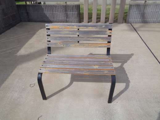 何度もお世話になっているお客様から、新たに施工のご依頼を頂き、現地調査にお伺いした帰りに、お庭の片隅に排除されている、ガーデンチェアーを発見!お話を聞くと『座面と背もたれの塗装が剥がれて、下地もボロボロになってしまったので、ペンキを塗り直そうと思っているが、ずーと放置状態になっている』との事でしたので、久々にお助けマン出動です!これまでも、電球交換や草刈り、庭木の補強材や支柱の取付、照明器具の交換などなど、私が出来るお手伝いは無償(材料費別)でさせて頂いております。