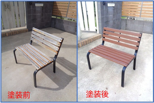 後日、新たに施工のご依頼を頂きましたフィルムを施工に行きますと『以前は、座ってるとお尻や背中が木の角で痛くなってきたけど、塗装をしてもらった後からは痛くならないので不思議に思い、よく見てみると角が丸まっている事に気が付きました。ここまでして頂いてありがとう、感謝・感謝です。』とお礼を言われました。こちらこそ、いつも気に掛けて頂いてありがとうございます、感謝・感謝です。